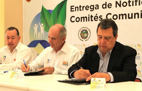 Ofreció el respaldo para que a través del programa Modernización Sustentable de la Agricultora Tradicional (Masagro), los productores guerrerenses aumenten su capacidad de producción de maíz y cereales de grano pequeño, como el trigo y la cebada, en forma sustentable, para lo cual firmaron un convenio mediante el que se entregaron 200 toneladas de maíz mejorado. El secretario de Desarrollo Rural, Humberto Zapata Añorve informó que el Proyecto Estratégico de Seguridad Alimentaria ha sido una política pública de mayor impacto en la atención integral de las familias rurales de alta y muy alta marginación. En el 2012, dijo, se ejercen recursos federales por el orden de los 412 millones de pesos con lo que se permitió incorporar a mil 793 nuevas familias de 163 localidades de alta y muy alta marginación. En este evento se entregaron notificaciones para autorización de proyectos del componente de conservación y uso sustentable de suelo y agua por un monto de 58 millones, 825 mil pesos para apoyar la puesta en marcha de 40 obras de captación y aprovechamiento de agua para actividades productivas en 22 municipios. Posteriormente sostuvieron una reunión de trabajo para presentar al secretario Francisco Mayorga tres programas que representan prioridad para la Secretaría de Desarrollo Rural, entre ellos el PESA, el Programa Estratégico para Elevar la Producción de Maíz en Guerrero, así como el saneamiento de hatos bovinos con la finalidad de que nuestro estado cuente con ganado sano y libre de tuberculosis. En estos eventos estuvieron presentes el secretario General de Gobierno, Humberto Salgado Gómez, el coordinador General de delegaciones de la Sagarpa, Francisco López Tostado, el delegado federal de Sagarpa, Carlos Hernández Sánchez, entre otros funcionarios.